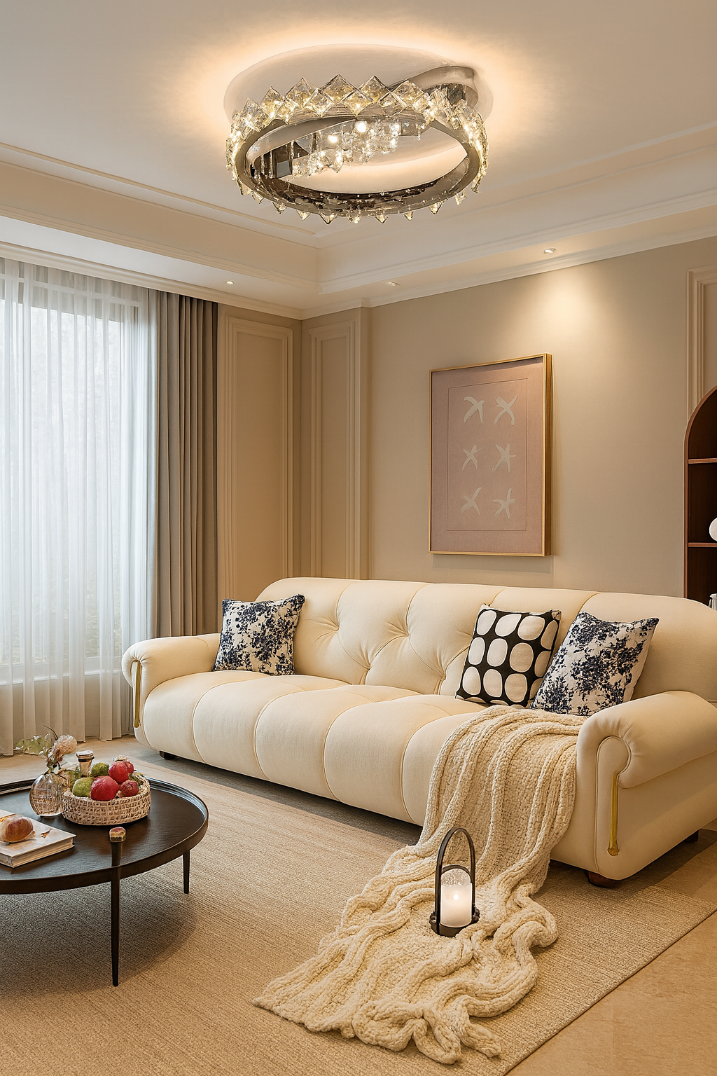 Luxury sparkle: glass-stone crystals deliver crisp, elegant light.