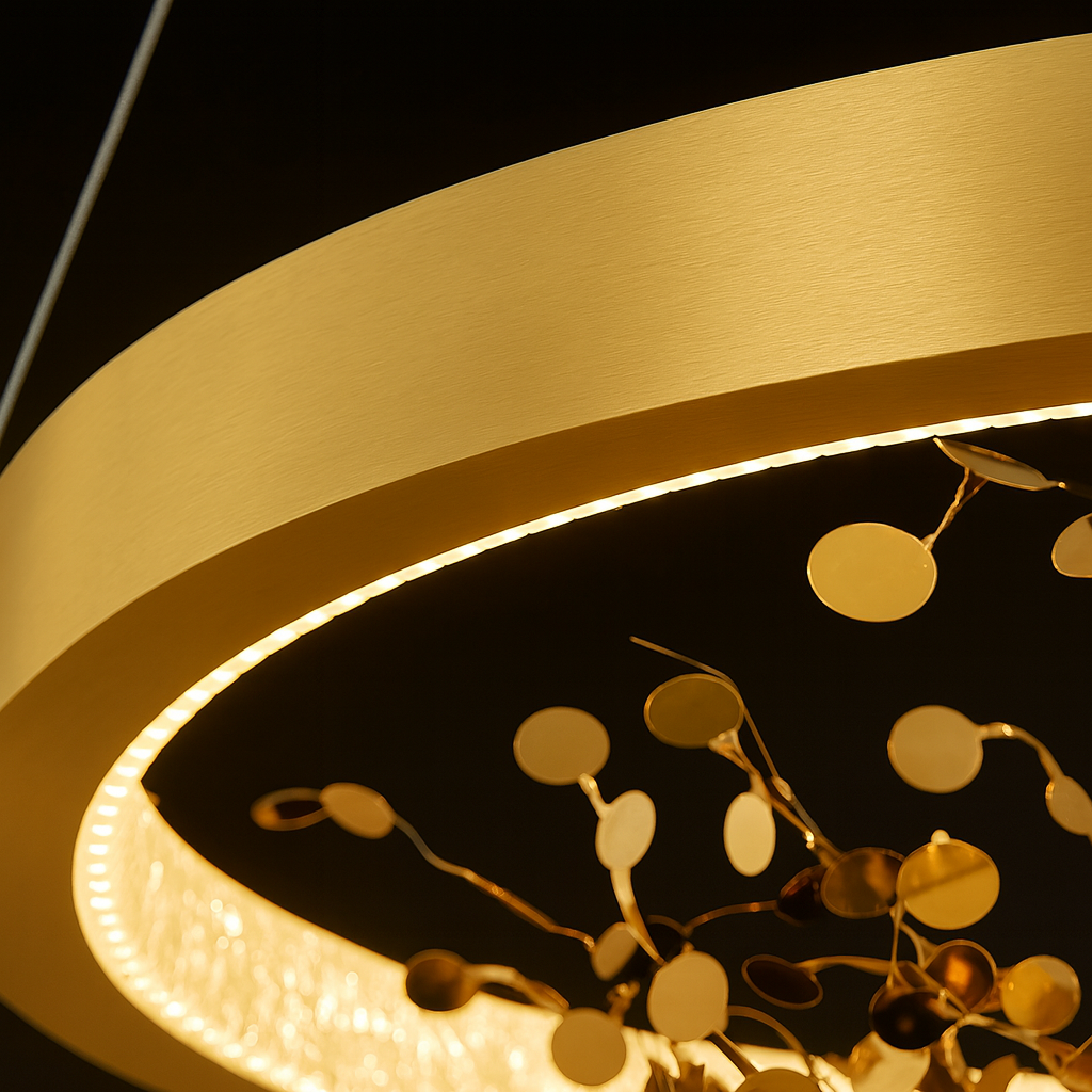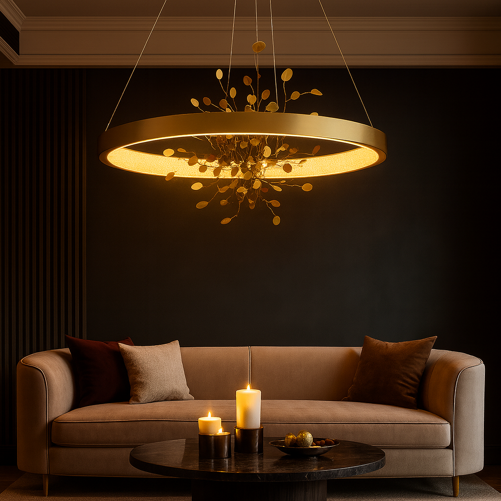 Add sculptural elegance to your interior with this Arco di Firenze Chandeliers. The slim, circular frame in gold floats overhead, washing spaces with a comfortable, glare-reduced LED glow. Built from durable metal with a wide-voltage driver (90–260 V), it suits contemporary homes and stylish venues alike—perfect above dining tables, in living rooms, master suites, home offices, and hotel halls or rooms.
