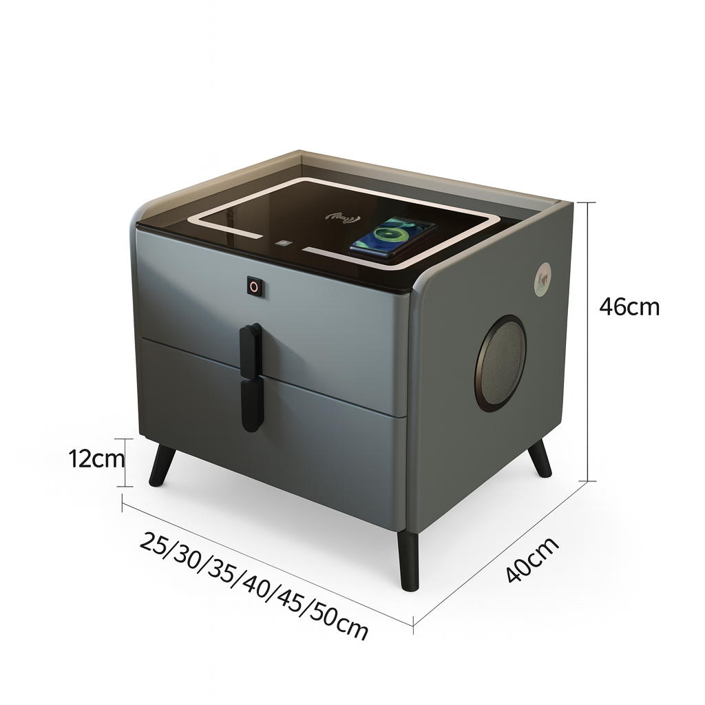 Crafted from high-quality solid wood, this multifunctional bedside table offers enhanced durability and a luxurious feel. Whether you're storing night-time essentials or charging your devices, this nightstand is a functional statement piece. With its integrated smart features like USB and wireless charging, it adds convenience to your lifestyle without compromising on design.