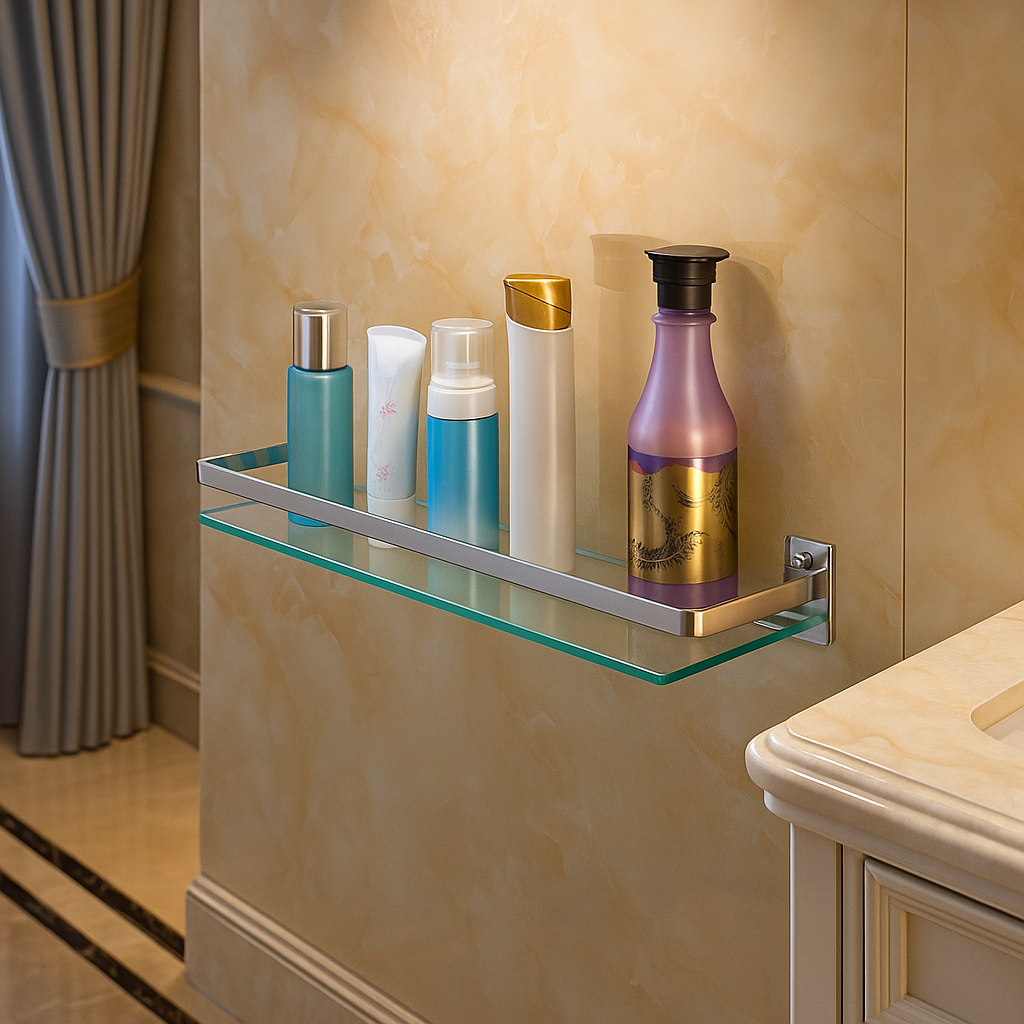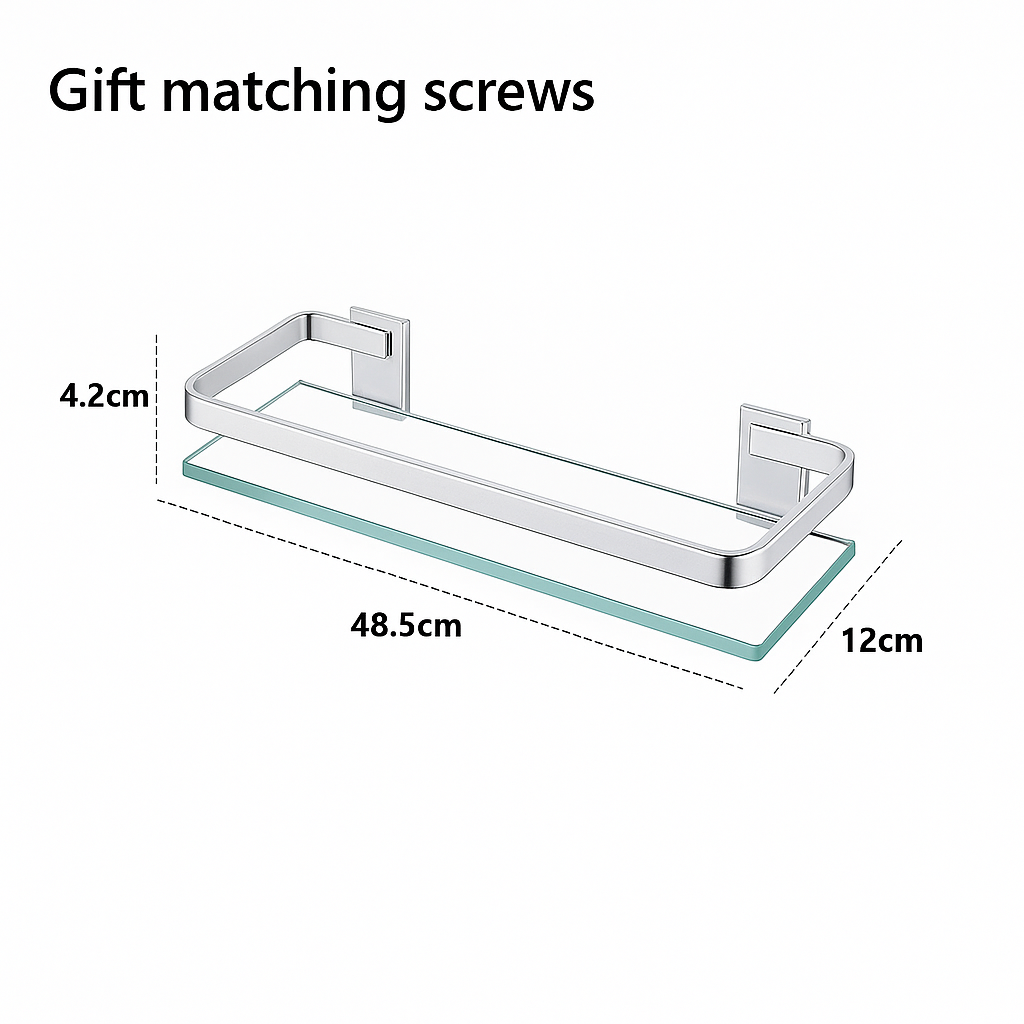 Attribute Details Dimensions 4.2X4.8X12CM 4.2X28.5X12CM 4.2X38.512CM Material Tempered glass + stainless steel/chrome Color Clear glass, silver/gold/black hardware Mount Type Wall-mounted β bore-free or screw-mounted Style Minimalist / Modern / Spa-style Weight Limit ~10kg (depending on installation method)
