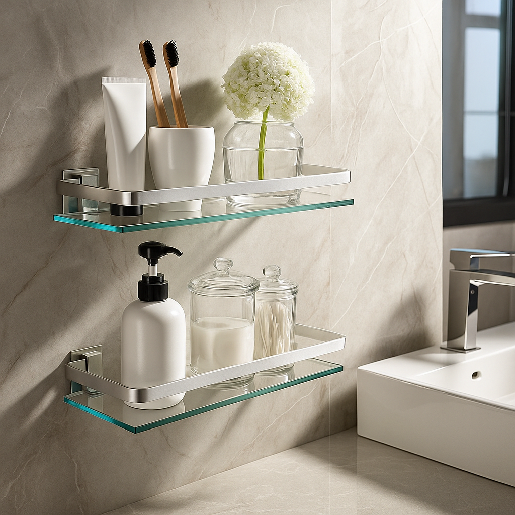 Upgrade your bathroom with the Capri Ordina Organization, a sleek and sturdy wall-mounted solution designed for both form and function. Crafted with high-quality tempered glass and rust-resistant stainless steel or chrome hardware, this shelf offers a minimalist yet practical way to store all your bath essentials.