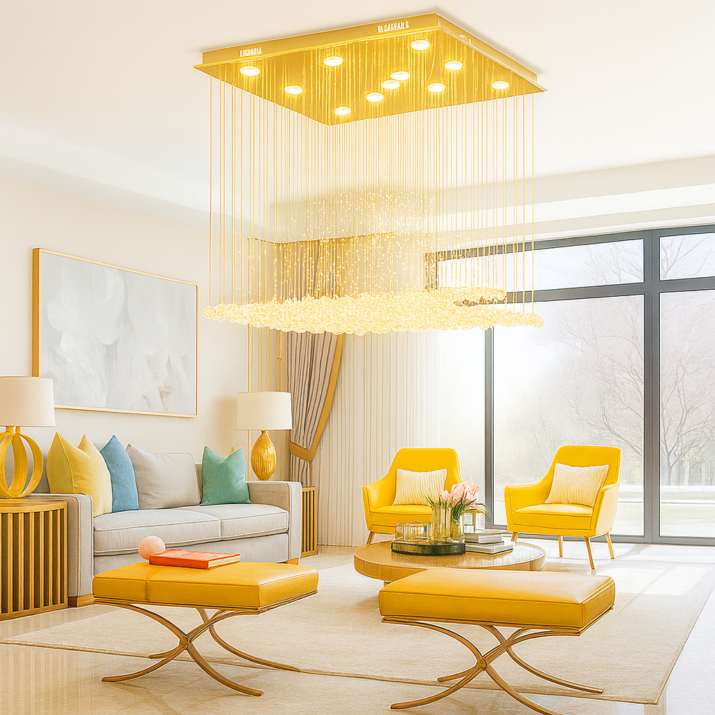 Elevate your space with a chandelier that blends optical-grade K9 crystal and minimalist metal geometry. The precision-cut crystals refract light into a clean, shimmering glow, while the square silhouette keeps the look modern and versatile for both residential and hospitality interiors.