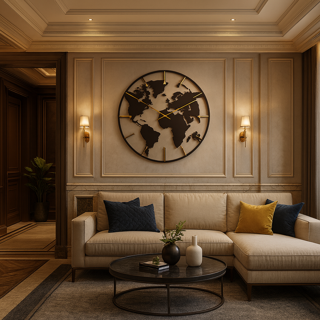 Bring a global perspective to your space with this Dot Tempo Wall Clock, designed to inspire a sense of connection and sophistication. Featuring a sleek silhouette of the world map on a clean clock face, this piece merges modern design with international flair — ideal for corporate offices, hotel lobbies, conference rooms, classrooms, or upscale living areas.