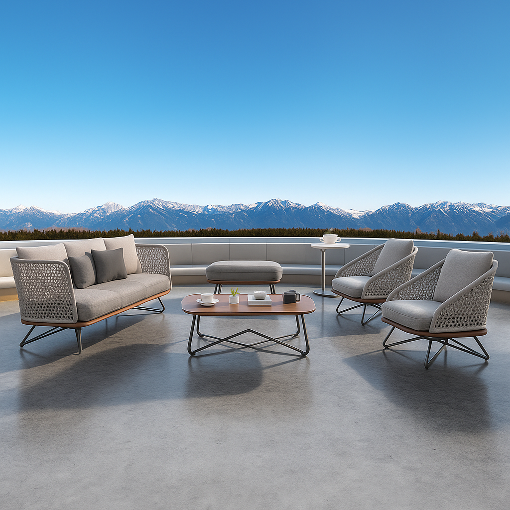 The natural woven texture provides a warm, welcoming atmosphere, while the plush cushions deliver superior seating comfort for daily relaxation or social gatherings. Whether used in a home garden, villa courtyard, or commercial outdoor space, the FulinWeave set offers a perfect blend of style, durability, and practicality.