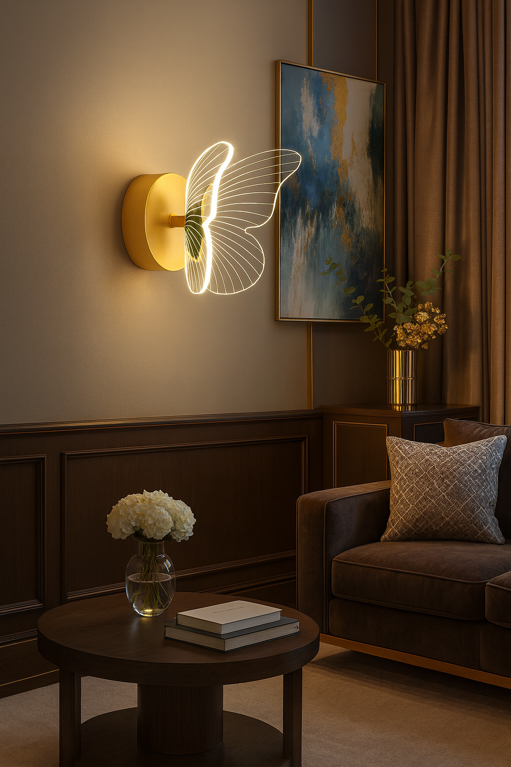 Grace your space with the serene elegance of the Élantra Lambs, a stunning fusion of modern minimalism and sculptural creativity. Shaped like a butterfly mid-flight, this wall-mounted fixture brings a soft glow to bedroom bedsides, TV background walls, or designer living rooms.