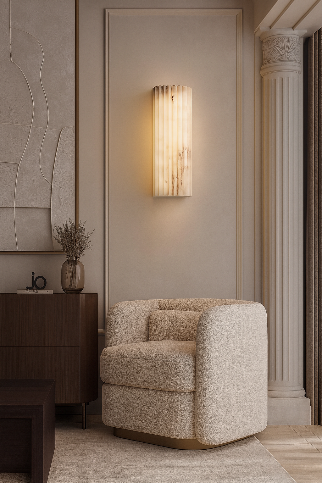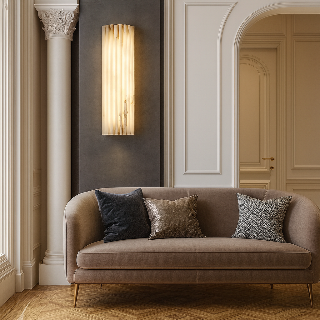 Add a refined glow to your interiors with the Lugh’s Crown Lambs, a designer sconce that balances art deco elegance with modern functionality. Crafted from authentic marble, this lamp emits a soft ambient light, ideal for cozy nooks, restaurant accents, or hotel hallways.