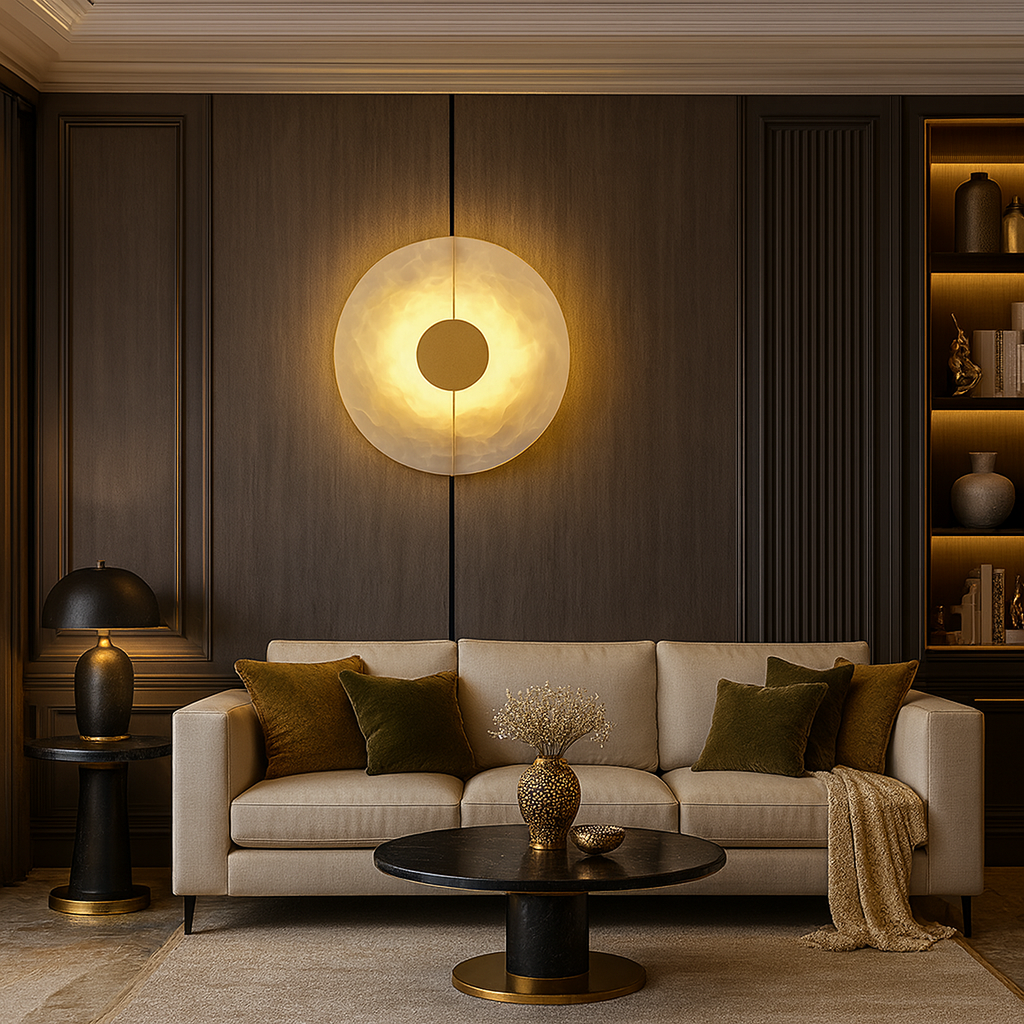 Attribute Details Style Modern / Light Luxury / Minimalist / Architectural Material Natural Alabaster Marble + Metal Light Source Integrated LED (Soft White Tone) Voltage AC90–260V Power Source Hardwired AC Mounting Type Wall-mounted Lighting Area ~3–6m² Application Spaces Bedroom, Bedside, Living Room, Aisle, Hotel, Gallery
