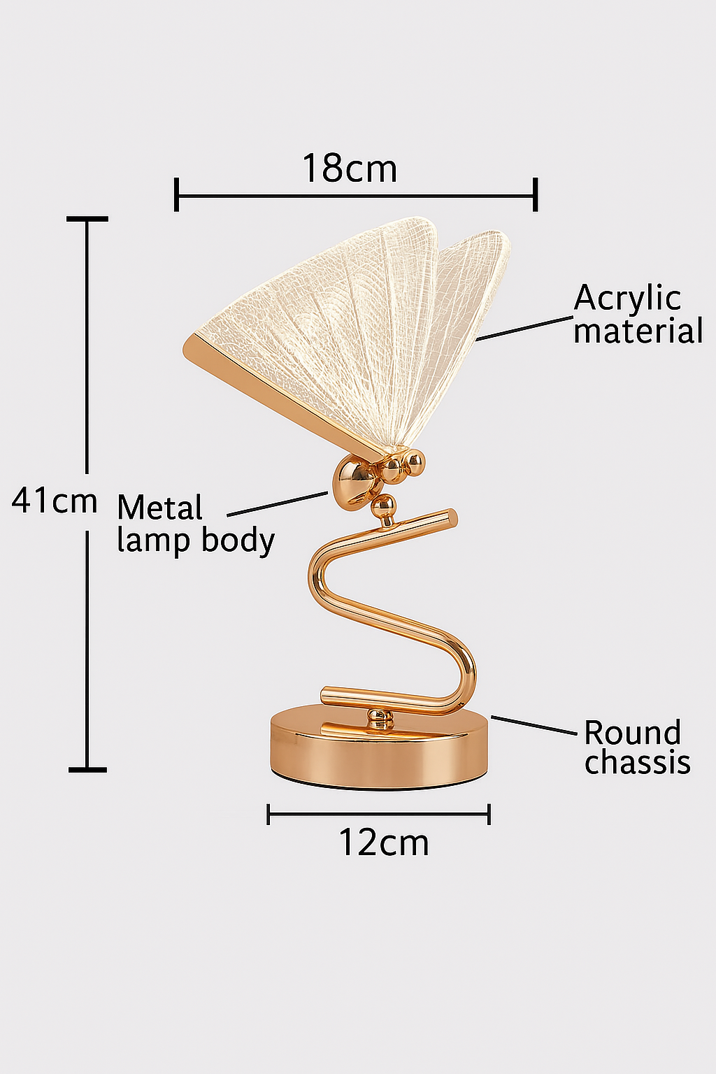 Material: Metal body + Fabric butterfly lampshade